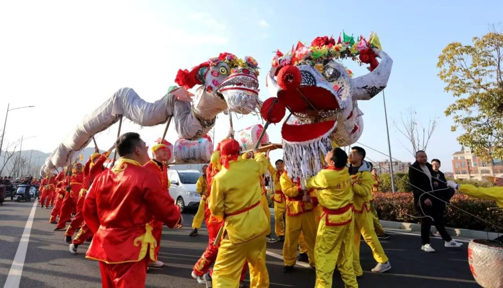 Wenn der Drachentanz aufgeführt wird, steigen die Drachenlaternen in die Wolken auf und schweben mit hoch erhobenen K?pfen, was eine majest?tische Atmosph?re schafft. Einer lokalen Legende zufolge sind die Drachenlaternen der Familie Zhan mit dem Drachen der Familie Lu verbunden und werden von den Einheimischen als "Drachen von Mann und Frau" betrachtet. Bei jedem chinesischen Neujahrsfest oder anderen wichtigen Festen treffen sich diese beiden Drachenlaternen im Dorf, nachdem sie die Lampe in das andere Dorf gebracht haben, und tanzen zusammen, was nicht nur den Charme der lokalen Volkskunst zeigt, sondern den Dorfbewohnern auch die Hoffnung auf ein besseres Leben und Segen vermittelt. In diesem Jahr treffen sich "Mann und Frau Drache" und tanzen was Wunderbares? Gemeinsam zur Szene, um es zu sehen.
