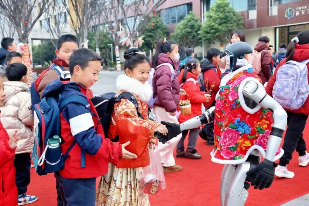 Am Eingang der Pukou Foreign Language School Hi-Tech Primary School im Jiangbei New District, Nanjing, schüttelten Roboter und Roboterhunde ihre "K?pfe" und winkten mit ihren "Armen", um allen ein neues und interessantes Geschenk zum Schuljahresbeginn zu überbringen.