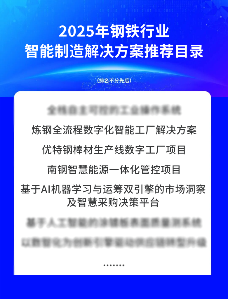 Kurz nach Jahresbeginn ver?ffentlichte der chinesische Verband der Eisen- und Stahlindustrie (China Iron and Steel Industry Association) eine umfangreiche Liste - den "Empfohlenen Katalog intelligenter Fertigungsl?sungen für die Eisen- und Stahlindustrie (2025)" - und eine Reihe von Projekten, die von Nangang angemeldet wurden, wurden erfolgreich ausgew?hlt. Der Katalog zielt darauf ab, hochwertige und reproduzierbare intelligente Fertigungsl?sungen auszuw?hlen, die Zusammenstellung einer Liste digitaler typischer Szenarien zu unterstützen und die digitale Transformation der Eisen- und Stahlindustrie zu f?rdern, um die Qualit?t zu verbessern und die Geschwindigkeit zu erh?hen.