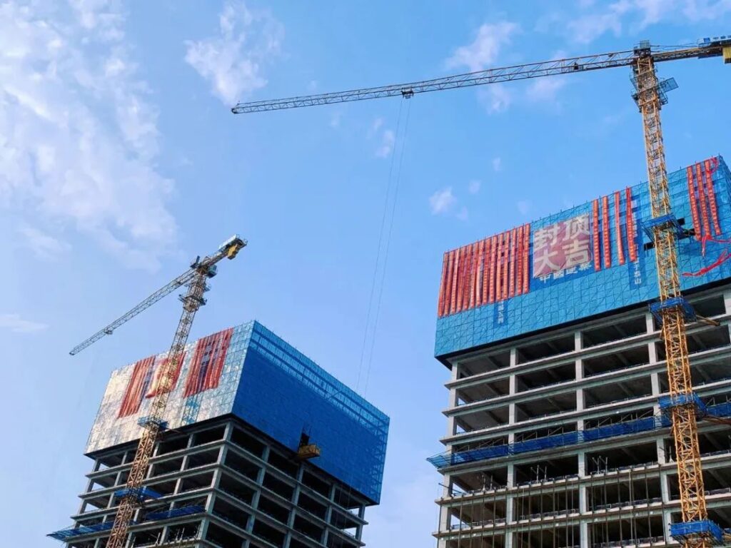 隨著最后一方混凝土澆筑完成藍聯盟共享產業園項目創業大廈和工廠主體結構全部封頂