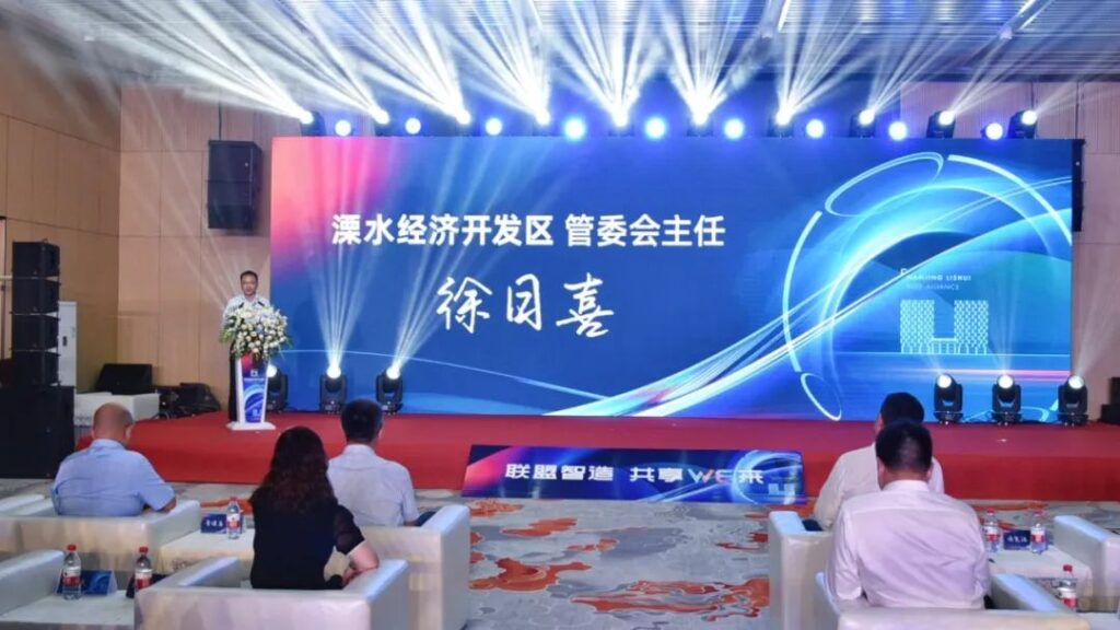 活動中,劉佳與胥保高共同為溧水經濟開發區電子智造共享示范基地揭牌;開發區招商局、藍聯盟共享產業園相關負責人分別作了開發區和產業園項目推介;南京商業地產商會相關負責人為藍聯盟科技有限公司“南京地產商會理事單位”“南京產業發展會客廳”授牌。