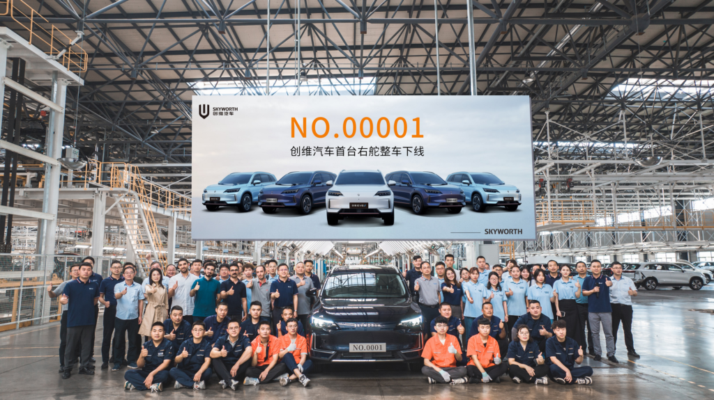 創維汽車右舵車立項于2022年,開始海外市場的布局和深耕。在立項伊始到量產下線,創維汽車始終持續對外公布最新車型推進進展。2023年8月17日,創維汽車達成右舵首臺白車身下線,一個月后,創維汽車以制造業超級速度完成了整車量產下線,右舵車整體生產項目完成閉環。