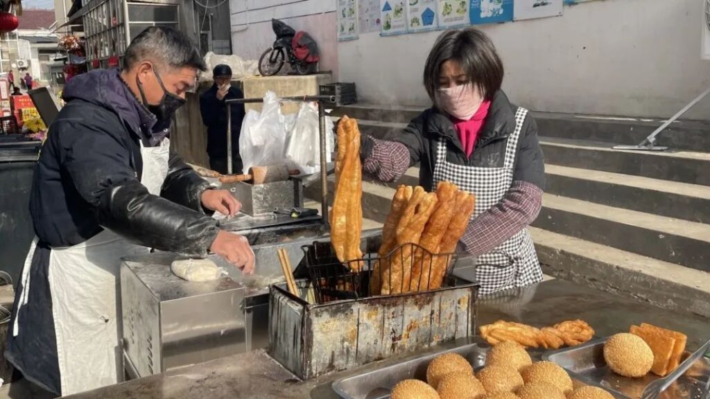 “老板,兩根油條、一個麻團,打包!”“我們在他家買了十幾年的油條了,就是吃不膩。”在菜市場一側的巷子里,一對夫妻正在油條攤位前忙碌著,油條、麻團現(xiàn)做現(xiàn)炸,蓬松酥脆。20年來,攤主毛師傅一直在這里擺攤,每天凌晨4點半出攤,早上9點左右收攤,高峰期一天能賣200根油條。