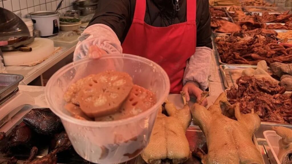 在老街中段,皇中皇鹵菜店門口售賣的糖藕吸引了小溧的目光。剛出鍋的糖藕軟而不爛、甜而不膩,糯米塞得結實,一口下去,口感甜糯,滿嘴的桂花清香,那叫一個滿足。“藕耐煮,軟而不爛才是最好的火候。”老板說,自家的冰糖糯米藕已經做了15年,廣受歡迎,順路的老客都會買上一盒帶回家。